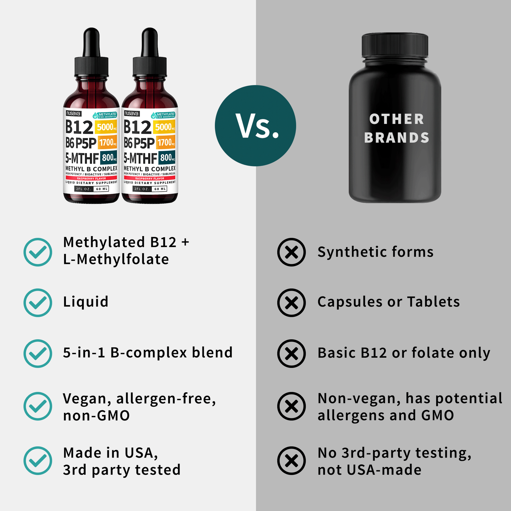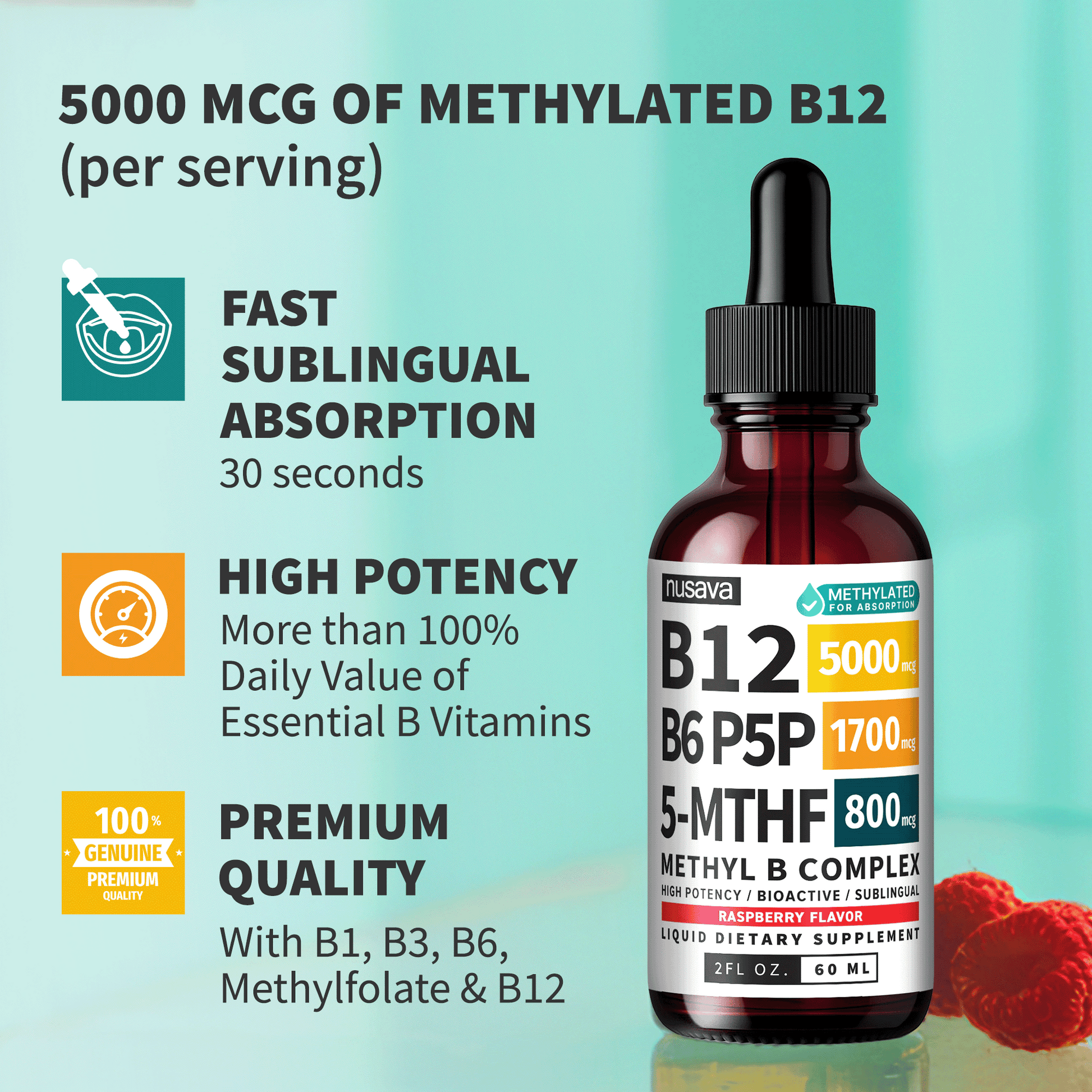 - Active, Methylated, and Made for You: Our B12 sublingual liquid combines methylated B12, active methylfolate, and essential B vitamins all in bioactive form for superior absorption. Formulated to support focus, clarity, and daily energy. No pills required.
