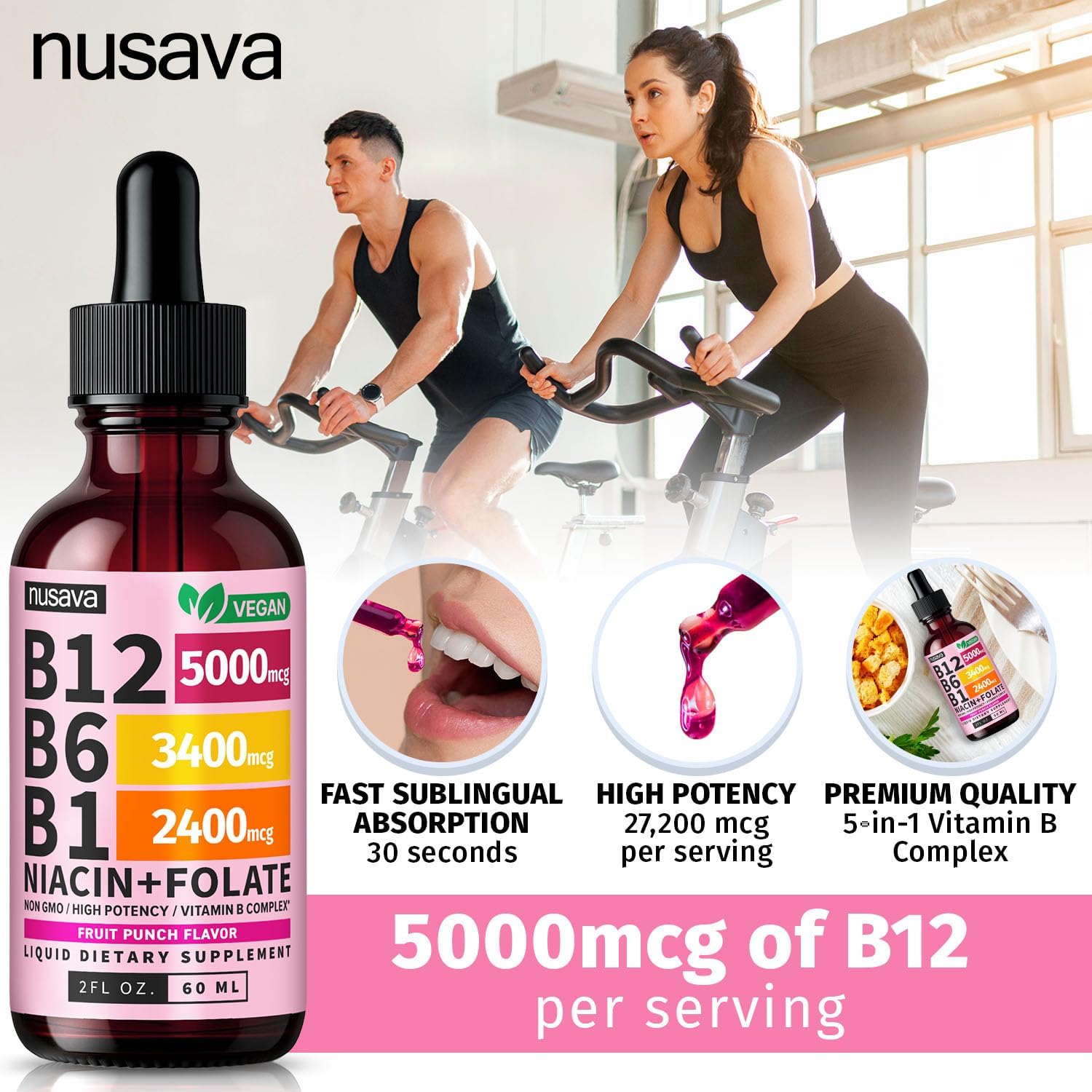 - B12 Drops Formulated for Maximum Potency - Our Liquid Vitamin B12 Drops contain Vit B12 5000mcg, B6, B1, Niacin, and Folic Acid, supporting overall body functions with 100% or more Daily Value.